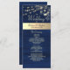 Ce programme de mariage rustique bleu marine comprend des lampes à cordes brillantes et de délicates oeuvres d'art florales en or, parfaites pour un mariage d'hiver ou de grange. Avec de l'espace pour les détails de cérémonie, les noms de fête de mariage et une note de remerciement personnelle, cet élégant design apporte chaleur et charme à votre journée spéciale.
