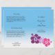 Créez vos propres programmes de mariage de qualité professionnelle avec ce modèle de programme bi-pli facile à utiliser. Ce programme simple mais élégant comprend un trio de fleurs d'hibiscus hawaïens sur la couverture. À l'intérieur, le texte est placé sur un arrière - plan de dégradé bleu calme, tout comme l'océan chaud d'Hawaii. Remplacez simplement l'exemple de texte par vos informations mariages. Mesure papier 8-1/2" x 11" Vous devrez plier les programmes en 8-1/2" x 5-1/2". Si vous avez besoin de customiser davantage l'espacement et les tailles du texte, cliquez simplement sur le bouton "Customisez-le!". N'hésitez pas à me contacter directement si vous avez besoin d'aide pour écrire le programme.