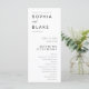 Présentez notre programme de mariage minimaliste - un ajout élégant et raffiné à votre journée spéciale. Ce programme de mariage blanc exhale l'élégance avec son design soigné et son esthétique propre. L'approche minimaliste est évidente dans le lettrage en bloc, créant un look intemporel et sophistiqué. L'avant du programme présente du texte soigneusement espacé, permettant à chaque mot de se démarquer sans besoin de décorations supplémentaires. La simplicité du design ajoute une touche de modernité à la présentation générale, assurant un programme qui complète n'importe quel thème mariage. Retournez à l'arrière du programme, où la fête de mariage est listée dans la même police de bloc simple. Ce détail subtil ajoute une touche personnelle, en présentant les membres clés qui font partie intégrante de votre célébration. Ce qui distingue ce programme de mariage minimaliste est sa personnalisation complète. Chaque mot et message peut être adapté pour refléter l'essence unique de votre histoire d'amour. Faites-le vraiment vôtre en incorporant votre formulation préférée, en vous assurant un programme qui sonnera avec vous et vos invités. Pour ajouter une touche chaleureuse, le programme se termine par un message de remerciement du couple heureux. Express votre gratitude dans le style et faites savoir à vos invités combien leur présence signifie pour vous en cette occasion joyeuse. Choisissez sophistication et simplicité avec notre programme de mariage minimaliste - une toile pour votre histoire d'amour, personnalisable à la perfection.