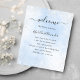 Un arrière - plan bleu bébé décoré de parties scintillant faux argent, brille. Personnalisez et ajoutez vos noms et les détails du mariage. Lettres de couleur noire. Si vous avez plus de texte, il est possible de réduire l'espace de ligne. Vous pouvez également ajouter du texte au verso. 1 feuille = 1 programme imprimé de bord en bord.