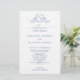 Élégant programme de mariage blanc et bleu avec un beau monogramme dessiné à la main avec les initiales du couple. Eléments calligraphiques modernes écrits à la main. Possibilité de modifier et d'ajuster le texte en sélectionnant "Modifier à l'aide de l'outil de conception". Avant avec les détails de la cérémonie mariage, retour avec les noms de la fête de mariage et message de remerciement pour vos invités. Disponible en deux options de type papier. Une partie de notre collection "Aquarelle Bleue, Mariage Monogramme Botanique" avec divers produits de coordination disponibles.