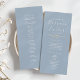 Élégant programme de mariage bleu poussiéreux minimaliste avec un cœur de corde dorée romantique et une écriture calligraphique délicate. Comprend le déroulement de la cérémonie et les détails de la suite de la mariée. Un parfait accord avec la suite complète de mariage bleu poussiéreux. Pour des modifications ou des questions, contactez : bpkolman@gmail.com