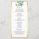 Programme de mariage simple, botanique, élégant, rustique or et bleu poussiéreux, avec aquarelle verte et script de calligraphie moderne.