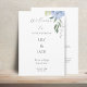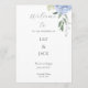 Carte d'enceinte élégante et élégante bleue hydrangea mariage, comprenant un message d'accueil, des détails complets du programme et un message de remerciement personnalisé. Le design comporte un ensemble de polices gris foncé chic contre un arrière - plan blanc. Elégant, romantique, élégant avec des sous-tons jeunes, ce design ajoute tout ce qui est spécial à votre grand jour. Personnalisez ce design unique pour en faire le vôtre.