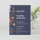 Une belle bordure en aquarelle peinte à la main avec une police moderne et un thème sombre. Modifiez facilement le modèle en fonction de votre événement mariage. Programme de mariage Boho en terre cuite de la Marine
