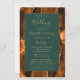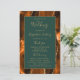 Ce programme de mariage élégant et moderne présente un fond d'agate orange brûlé et rouille rehaussé de fausse brillance dorée. Le texte apparaît dans une écriture manuscrite dorée élégante et des polices copperplate sur un rectangle vert foncé.