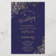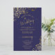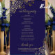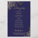 Ces programmes de mariage sont élégants et de bon goût, tout en étant toujours à l'aise avec le budget. Le design comprend des boucles et des tourbillons en faux feuille dorés ornés de texte doré sur un arrière - plan bleu marine. La typographie présente une calligraphie de script dentée, et il y a de la place pour des détails sur la cérémonie, la fête de la mariée, et un bref merci.