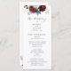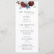 Un thème bohème avec des fleurs bleues rougeoyantes bordeaux aquarelle. Vous pouvez personnaliser le texte et les couleurs de ce programme de mariage.