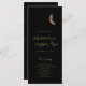 Modèle du programme de mariage céleste noir et or avec lune d'or, étoiles et texte.