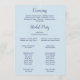 Ce programme de mariage aux fleurs blanches classiques est parfait pour un mariage de printemps. L'élégante décoration florale est composée de roses blanches et d'ivoire, de pivoines et de chrysanthèmes, avec des touches de fleurs d'aquarelle bleu périvent et de feuillage vert. Indiquez le nom de la mariée et du marié, la date et le lieu du mariage, le message de remerciement, l'ordre de service et la fête de la mariée.