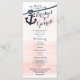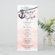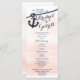 Ancre et corde conception nautique imprimé carte à crémaillère programmes de mariage avec l'aquarelle blush arrière - plan et le texte bleu marine.