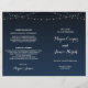 Programme de mariage de nuit bleu étoilé de la Marine céleste. Parfait pour le mariage de jardin extérieur et le mariage à thème céleste Pour un look cohésif, voir ÉLÉMENTS CORRESPONDANTS : https://www.zazzle.com/collections/starry_night_wedding_collections-119114444457820023 PERSONNALISER CET ÉLÉMENT (1) Pour plus de personnalisation, cliquez sur le lien "customiser plus loin" et utilisez notre outil de conception pour modifier ce modèle. Vous pouvez aussi changer la couleur arrière - plan ! (2) Contactez-moi si vous désirez des articles correspondants qui ne sont pas disponibles dans ma boutique.