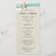 Ruban Aqua, dentelle et étoile de mer vintage carte de programme de mariage est deux côtés avec les détails de cérémonie sur le devant et les participants de mariage sur le dos.