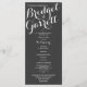 Ardoise foncée, tableau noir inspiré texte design imprimé carte à crémaillère programmes de mariage avec du texte blanc ou modifier la couleur du texte comme préféré.
