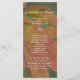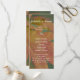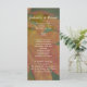 Donnez à vos invités l'ordre de votre cérémonie de mariage de septembre, octobre ou novembre avec le programme naturel de mariage des couleurs d'automne. Ce programme de chronologie décontracté ou classique de l'automne présente une photo de la nature peinte en gros plan numériquement de feuilles d'érable coréen orange, rouge et jaune sur l'arbre avec un arrière - plan de bois vert flou.