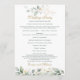 Ce design présente une illustration d'une belle couronne botanique aux feuilles verdâtres et dorés en aquarelle.Ce programme de mariage fait partie d'un ensemble assorti. Vous pouvez ajuster le texte en fonction de vos besoins.