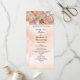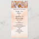 Programme de mariage sur une carte à crémaillère. Bel design avec un papillon orange touchant perles de perles blanches en forme de coeur. Un autre papillon se fond dans le bouquet de roses rose et orange pâle. Orange est la couleur de thème sur l'image papier parchemin. Convertissez ceci pour n'importe quelle occasion. Ajoutez une photo et/ou modifiez le texte. Personnalisez ce modèle avec vos informations.