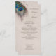 Une belle plumes de paon bleu, bronzé et vert embellit le haut à gauche de cette carte de programme de mariage formel. Votre texte personnalisé est en marron en haut à droite et au centre. Nous avons laissé beaucoup de place pour votre propre texte et style personnalisé. Utilisez Personnaliser pour modifier la police, la taille, l'espacement, l'emplacement, etc. Les images et le texte sont placés sur un arrière - plan gris clair en détresse qui complète les couleurs des plumes. Le verso de l'invitation correspond au devant sans le texte, mais vous pouvez ajouter votre propre texte en choisissant Customiser. Cette carte de menu correspond au Faire-part de mariage Peacock Feather Border et à d'autres produits mariages de notre magasin.