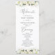Programme de mariage des Roses blanches vertes. Cette invitation de mariage élégante et élégante présente de magnifiques aquarelles peintes à la main de verdure Roses blanches. Trouvez les articles correspondants dans la collection de roses blanches vertes.