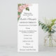 Un programme de mariage rose et fleuri, très adapté pour un jardin ou une mariage à thème botanique. Cette jolie carte présente un bouquet de roses roses dans le coin supérieur gauche de l'avant, mis en valeur par des fougères vertes. Tous les détails des deux côtés de la carte peuvent être facilement personnalisés selon vos besoins. L'envers est plus sobre, avec une seule rose rose en bas. Ce programme de mariage rose fait partie d'une collection de mariages jumelés, que vous pouvez voir en entier ici : https://www.zazzle.com/collections/pink_roses_and_ferns_wedding-119521965467361430