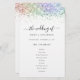 Budget Rainbow Parties scintillant Script Wedding Programme. Une taille PLUS GRANDE 5,5" x 8,5" à un prix abordable, sur un élégant stock LINEN de 110 lb - pour un sentiment de luxe à un bon rapport qualité-prix, c'est parfait pour les invitations, menus, programmes, etc. Cette alternative de 5,5 x 8,5 pouces est également disponible dans d'autres choix de papier. Le stock de carte SEMI-GLOSS 110 lb est à peu près de la même épaisseur qu'une carte postale, donc fonctionne bien aussi pour les invitations. Le papier FELT 100 lbs est de couleur bouffante, PAS blanc, donc ajoute une touche rustique. Le stock de papier MATTE 80lbs est blanc vif, pour une impression nette, idéal pour vos menus et programmes, tandis que le papier SATIN 80lbs est mince et léger, idéal pour les enceintes. Style glam avec parties scintillant imitation multicolore bordant le dessus de chaque côté. Personnalisez facilement le texte selon vos besoins.