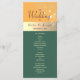 Elégant, moderne, tons bijoux, vert émeraude, jaune et prune violet programme de mariage, avec dentelle dorée dorée fleurie et calligraphie simple.