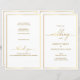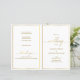 Ce programme de mariage élégant pliable présente une bordure en faux or qui s'adaptera à de nombreux thèmes mariages. Conçu pour être imprimé sur les deux côtés et fourni plat pour vous plier, la couverture montre le lieu tandis que l'intérieur peut être édité avec l'ordre de service et la fête de mariage.Ce design moderne avec des bordures d'or est adapté pour un service religieux de mémorial d'église ou une cérémonie humaniste. L'effet de feuille d'or FAUX est imprimé et n'est PAS métallique.