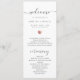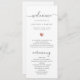 Ce programme de mariage chic brille avec simplicité. La typographie moderne et la calligraphie sublime accentuée par un joli coeur en or rose (imprimé), cette commande de service avec un résumé des personnes clés à l'arrière est à la fois minimaliste et élégant.