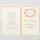 Cadre de couronne de feuillage de corail plié cérémonie mariage et programme de fête avec cadre orange de corail en feuille et texte en gris sur ivoire. Cette modèle moderne et élégante est une partie design entièrement personnalisable d'un ensemble de mariage parfait pour votre mariage de printemps, été, automne ou automne. Il faut le plier au centre. Choisissez seulement ce type de papier-valeur comme il se plie bien.