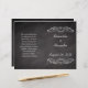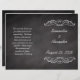L'ensemble de programme de mariage en damier ardoise-allure de mariée dispose d'arrière - plan gris fusain foncé avec effet de tableau noir d'ardoise, et craie blanche écriture manuscrite de dessin à l'avant-plan. Le motif tourbillon décoratif apporte une touche d'élégance décontractée. Tous les Designs Copyright © 2013 www.CustomInvitesOnline.com