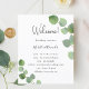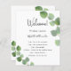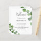 Un programme de mariage moderne, élégant, chronologie. Arrière - plan blanc, orné de végétation d'eucalyptus, sprigs. Personnalisez et ajoutez vos noms et les détails du mariage. Lettres de couleur noire. Si vous avez plus de texte, il est possible de réduire l'espace de ligne et d'ajouter du texte au dos.