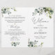 Conçu pour aller avec notre collection de mariage Boho Greenery, ce programme de cérémonie Bi-Fold personnalisable présente des branches d'eucalyptus à l'aquarelle avec une police serif élégante et des graphiques de texte en calligraphie élégante. Articles assortis disponibles.