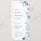 Modèle de programme de mariage élégant et simple avec fleurs sauvages fantaisistes bleu poussiéreux et marine.