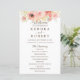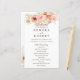 Ce beau programme de mariage présente des roses roses corail rehaussées de feuilles et de branches dorées. Le texte marron foncé se coordonne parfaitement avec les motifs floraux roses et dorés. La couverture présente les noms des mariés, la date et le lieu du mariage, ainsi que les détails de la cérémonie. Au dos figurent les noms des participants au mariage. Tous les détails, y compris la couleur du texte, sont entièrement personnalisables. Veuillez noter : les feuilles dorées ne sont pas en dorure et ne seront pas brillantes sur le programme imprimé.