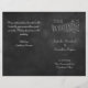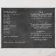 Les graphismes vintages mettent l'accent sur le type rétro de ce programme de mariage sur un arrière - plan de tableau noir illustré. Il fait partie de la collection de Mariages Chalkboard, mais il se coordonnera facilement avec n'importe quelle invitation de tableau de bord. Il est imprimé sur le papier léger du prospectus, de sorte qu'il est facile à plier en deux.
