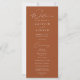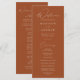 Élégant programme de mariage avec un script moderne de calligraphie blanche avec un arrière - plan en terre cuite pour créer un design qui est parfait pour les mariages de tous les styles et de toutes les saisons. Personnalisez l'avant du programme de mariage moderne avec vos noms, la date et l'emplacement du mariage et l'ordre de la cérémonie. Le simple programme de mariage en terre cuite inverse pour afficher une liste de votre mariage. Le design a été conçu pour être coordonné avec notre collection de mariages Modern Elegance.