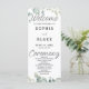 Présentant notre programme de mariage blanc, orné d'une touche d'élégance de la nature sous la forme d'une belle bordure de verdure naturelle en haut et en bas. Ce choix de design enchanteur symbolise la croissance éternelle et l'amour florissant entre vous et votre partenaire, ce qui en fait un complément parfait à votre papeterie de jour de mariage. L'arrière - plan blanc immaculé du programme dégage pureté, simplicité et le début d'un nouveau chapitre dans vos vies. L'ajout de la bordure verdoyante apporte un sentiment de fraîcheur et de vitalité, insufflant à votre programme de mariage une touche de charme naturel et de sophistication. La combinaison du blanc et du vert crée une esthétique intemporelle et classique, ce qui la rend adaptée à une variété de thèmes et de styles mariages. Les détails du programme sont minutieusement présentés en noir et gris classique, en utilisant une police de caractères simple qui assure une lisibilité claire et facile pour vos invités. Ce choix de police maintient une apparence propre et élégante, permettant à vos invités de suivre les cérémonies sans effort. Pour ajouter une touche de romantisme et de raffinement, les mots "Welcome", "Ceremony" et "Wedding Party" sont délicatement reproduits dans une jolie police de caractères décoratifs. Cette police de script élève ces éléments clés, insufflant au programme un sens de grâce et d'élégance. La police de script sert de point focal visuel, améliorant la beauté globale du programme et ajoutant une touche de charme personnalisé à votre jour de mariage. La couverture arrière du programme comporte une liste des membres de la fête de mariage, présentée dans la même police de caractères exquise utilisée sur la couverture avant. Ce détail attentionné reconnaît non seulement le rôle important joué par vos proches, mais ajoute également une touche chaleureuse et personnalisée au programme, ce qui en fait un souvenir précieux pour vous et vos invités. Notre programme de mariage blanc avec bordure de verdure naturelle est plus qu'un simple guide pratique - c'est une oeuvre d'art qui capture l'essence de votre histoire d'amour. L'association de l'arrière - plan blanc immaculé et de la verdure luxuriante crée une ambiance visuellement captivante et élégante. Ce programme de mariage est une belle représentation de votre amour et de votre engagement, ce qui en fait un ajout significatif et mémorable à votre journée de mariage.