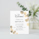Un programme de mariage moderne et élégant, chronologie. Fond blanc, décoré d'eucalyptus doré, brindilles. Personnalisez et ajoutez vos noms et détails de mariage. Lettres de couleur noire. Si vous avez plus de texte, il est possible de réduire l'espace entre les lignes et également d'ajouter du texte au verso.
