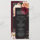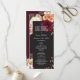 Programme de mariage rustique, moderne, élégant et floral bordeaux et noir avec d'adorables fleurs de chute d'aquarelle et l'herbe de pampas.