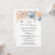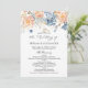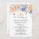 Cette conception présente une illustration aquarelle de fleurs roses pâles pêche et bleues avec des confettis à effet doré sur le dessus de la carte.