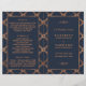Ces programmes bi-plis sont parfaits pour tout couple qui planifie une célébration de mariage vintage romantique. Le design se compose d'un élégant arrière - plan de design géométrique en marine et en or avec un cadre de bordure décoratif et est fini avec un élégant libellé modifiable. Le design simple peut être personnalisé pour convenir à votre événement spécial et sera la commande parfaite pour toute fête à thème vintage, y compris : douches nuptiales, fiançailles, wedding showers, fêtes d'anniversaire et bien plus encore.