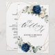 Programme de mariage floral bleu marine foncé avec élégant bouquet de bleu marine, bleu royal, blanc, or, ivoire champagne, rose couleur rousse, hydrangea, ranunculus, pivoine, bourgeons de fleurs et sauge vert eucalyptus feuilles et élégant aquarelle avec parties scintillant ronde cadre neutre géométrique. Veuillez me contacter pour toute aide sur la personnalisation ou si vous avez besoin d'un autre produit avec ce design.
