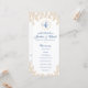 Design simple et élégant de feuille d'or parfait pour votre modèle de couleur or et marine avec police de script traditionnelle. Toutes les informations sur le mariage et les détails de la fête de mariage sont listés sur ce programme, ainsi qu'un endroit spécial pour se souvenir des proches qui ne sont plus avec la mariée et le marié le jour de leur mariage.
