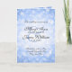 Conception élégante de "programme de cérémonie de mariage" avec Hiver bleu étincelant (flocons de neige + étincelles) et texte personnalisé.