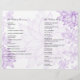 Des fleurs graphiques dessinées en blanc contre un mauve doux font une belle déclaration sur ce programme de mariage flyer. Des fleurs similaires sont répétées comme des filigranes au verso. Un regard sentimental pour une journée spéciale. Disponible en couleurs alternatives avec des produits correspondants.
