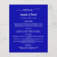 Un programme et un menu de mariage classique. Un arrière - plan bleu royal. Texte blanc. Personnalisez et ajoutez votre nom, votre date et votre programme et le menu. 1 feuille = 1 menu imprimé bord à bord.