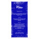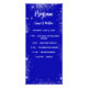 Programme et menu de réception de mariage. Personnalisez et ajoutez votre nom, votre programme et le menu. Arrière - plan bleu royal, texte blanc. Décoré de parties scintillant en faux argent, pétillant. Retour : ajoutez le menu du dîner de célébration.