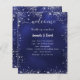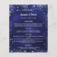 Un programme et un menu de mariage classique. Un arrière - plan bleu marine. La couleur bleue est inégale. Texte blanc. Décoré de parties scintillant en faux argent, pétillant. Personnalisez et ajoutez votre nom, votre date et votre programme et le menu. 1 feuille = 1 menu imprimé bord à bord.