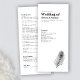 Design minimal Carte de programme de jour de mariage comprend une élégante illustration de ligne de plumes paon avec un thème classique de couleur noir et blanc. Design typographique moderne et épuré, cette pièce est prête pour vous à customiser avec les détails de votre journée spéciale. Faisant partie d'une gamme toujours croissante de papeterie, s'il vous plaît naviguer dans la Suite de Mariage de plume Peacock noir pour les articles correspondants.