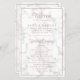 Programme de mariage moderne et élégant avec vos informations en or rose faux, entouré d'une bordure, sur un fond en marbre gris et blanc. Les en-têtes sont dans une police de caractère script élégante. Ajoutez vos événements de cérémonie au recto et vos participants au mariage au verso. Ce design chic et stylé est idéal pour une célébration en hiver. Ces programmes de mariage bon marché sont imprimés sur des feuilles de papier pour une option économique.